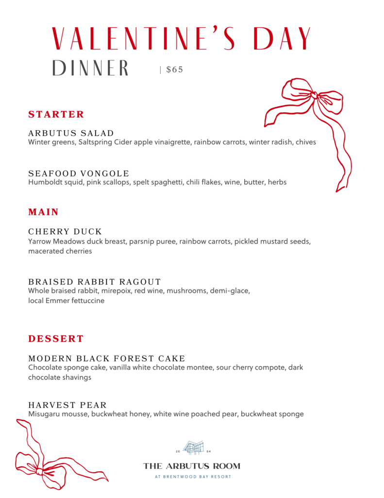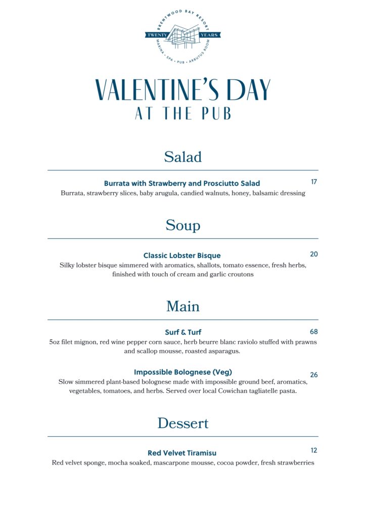 Whether you’re planning a Valentine’s escape, a romantic dinner, or a cozy coastal getaway, the Month of Love at Brentwood Bay Resort invites you to slow down, reconnect, and celebrate together.