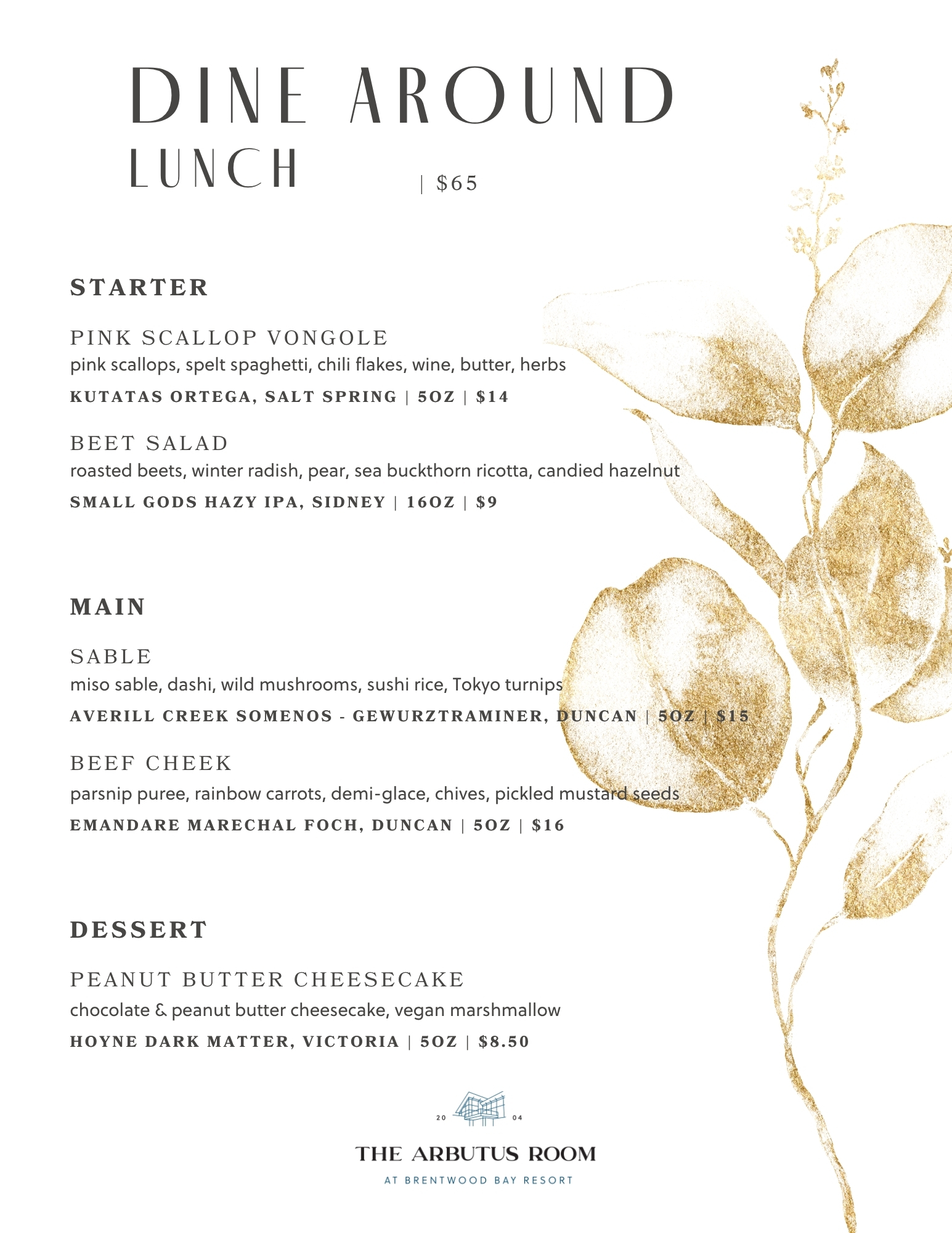 Dine Around The Arbutus Room & The Pub at Brentwood Bay Resort